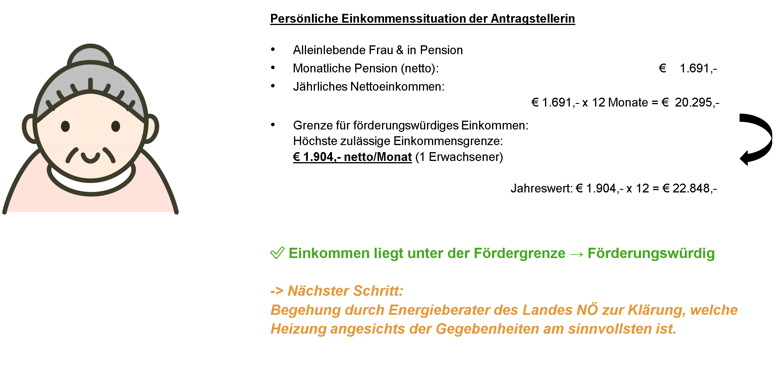 • Die Einkommensgrenzen orientieren sich z. B. an Sozialhilfe-Leistungen oder Wohnbeihilfe-Kriterien; genaue Werte werden je nach Bundesland geprüft